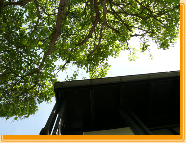 Ein Beispiel für situationsbezogene Baumpflege ist der Baumstandort in direktem Umfeld mit Bebauung. Häufig ist der Anlass zu einer Kronenpflege das Freistellen von Gebäuden, Fassaden oder Dächern.