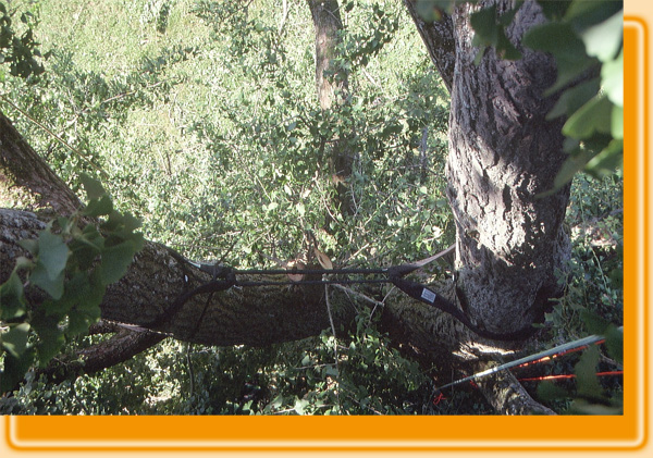 Die Fotos zeigen hier die sogenannten Halteschlaufen an einem Starkast im oberen Bereich der Baumkrone.